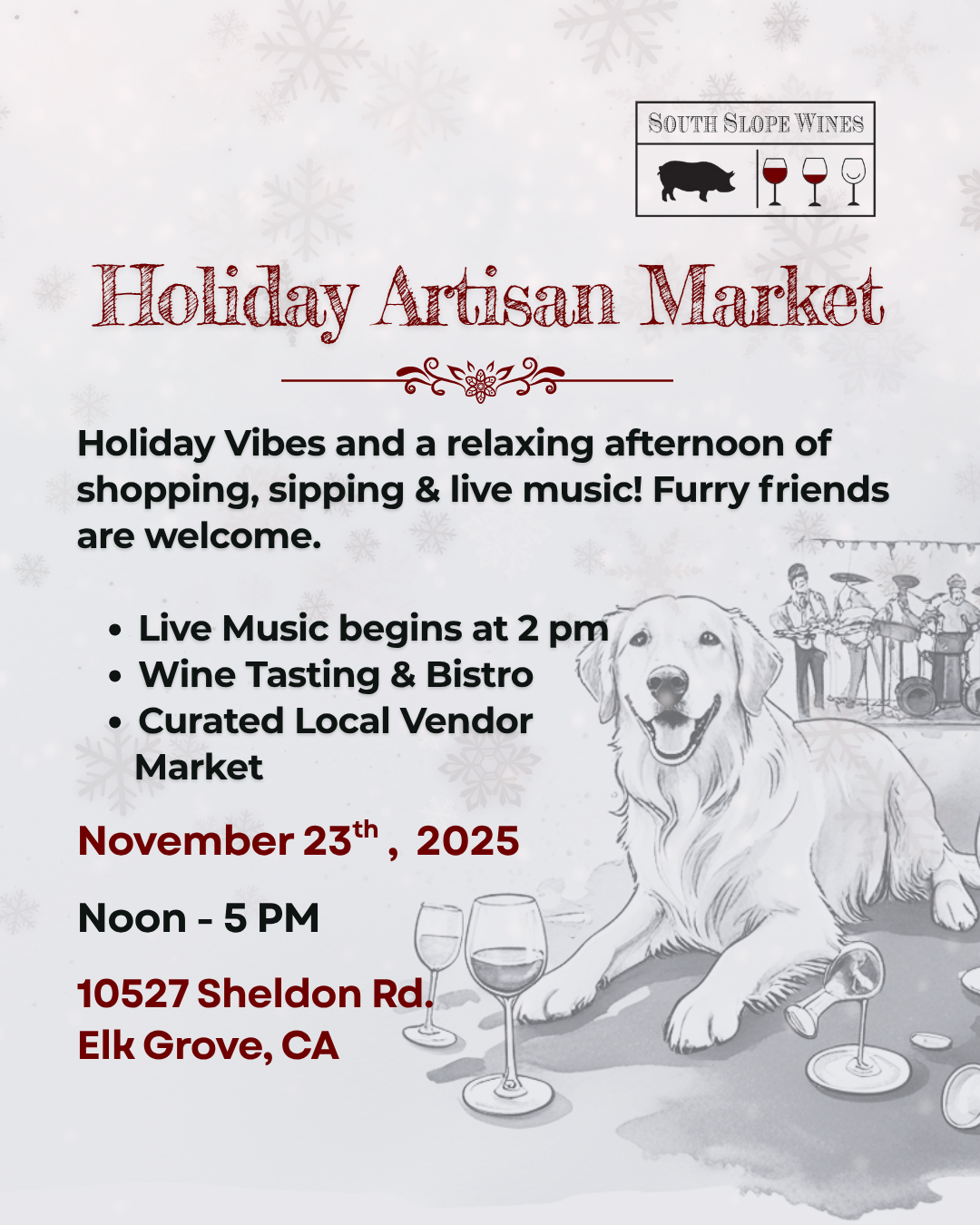 Stop by and get some wine for your holiday gifts3 Bottle Holiday Special 20% OFF through New Years. OPEN Sunday 12/26, Wednesday 29th, Thursday 30th 11 to 6pmOPEN New Years Eve, Friday Dec 31st until 8pm Elk Grove Tasting Room