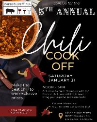 Lets get it on! Bring your best Chili and all the fix-in's to our 2nd annualChili Wine Fest and enter to win prizes to top three entries. OR... 1pm - 5 pm